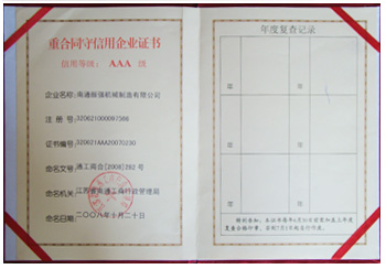 江蘇振強機械科技股份有限公司 >> 公司簡介 >> 資質(zhì)證書 >> 重合同守信用企業(yè)證書